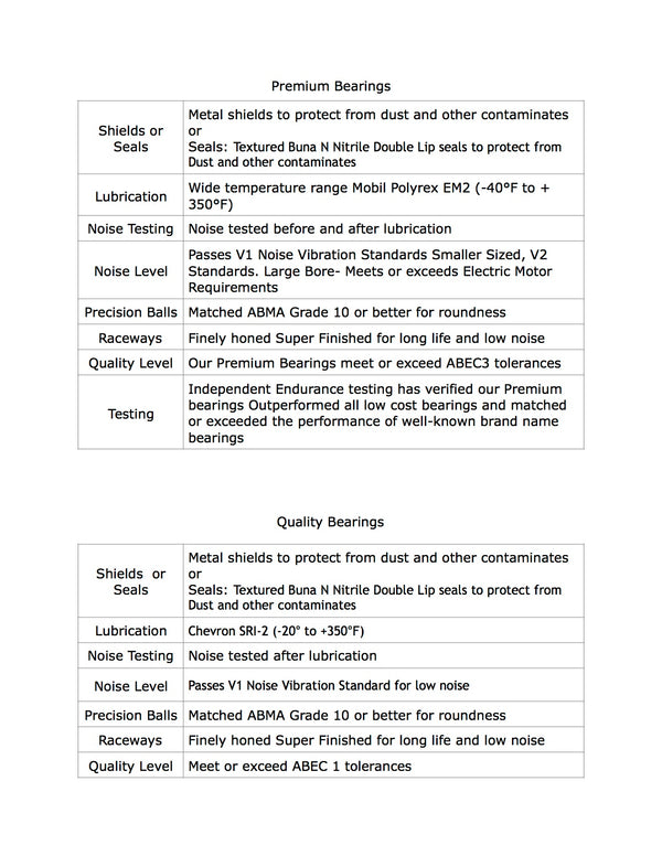 Independent Endurance testing has verified our bearings Outperformed all low cost bearings and matched or exceeded the performance of well-known brand name bearings.